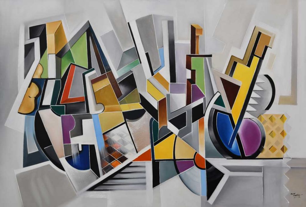 Conquise par l’impressionnisme et ses couleurs printanières, Mounia Amor pousse encore plus loin ses pérégrinations artistiques et invite dans ses toiles les formes cubiques.